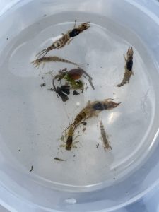 Homesford. Very good results. Sunny at midday so some of the nymphs hatched out. Mayfly nymphs about.
